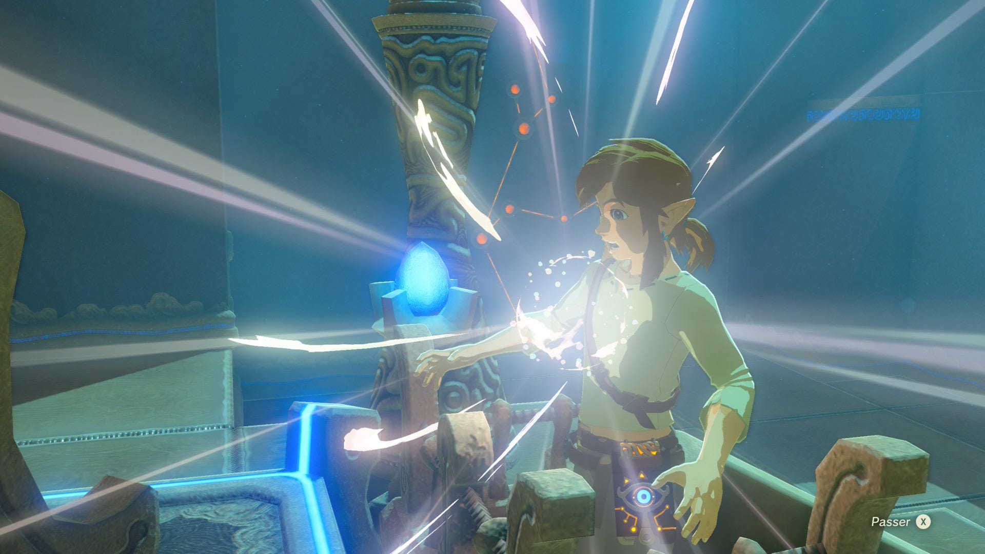 Oui, le bonheur, tout simplement. Link est plus réactif, la caméra plus fluide, on a la sensation de glisser dans le monde ouvert, comme un glorieux voilier sur une mer d’huile, au lieu de cahoter telle une vieille guimbarde. Les combats sont plus intenses, on se sent comme libéré, comme un animal sauvage s’échappant de sa cage à 30 barreaux. Et on peut courir dans la Forêt Korogu sans que l’animation chute drastiquement !