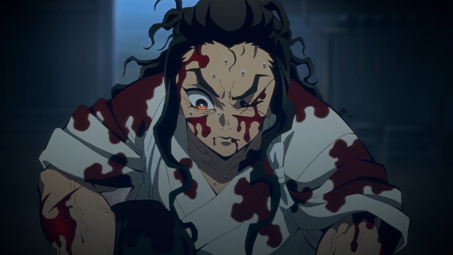 Chaque affrontement avec l’un des sergents de l’armée du démon Muzan est un défi colossal, ayant souvent un prix. Si les démons peuvent se régénérer, ce n’est pas le cas des humains. Tout sacrifice se paye au prix cher.