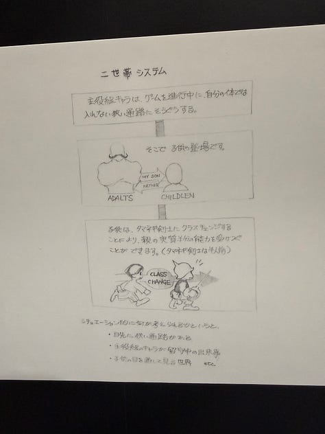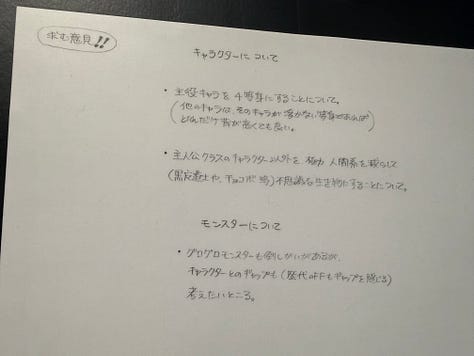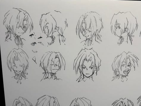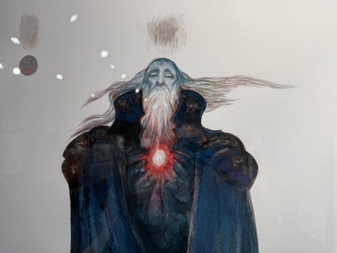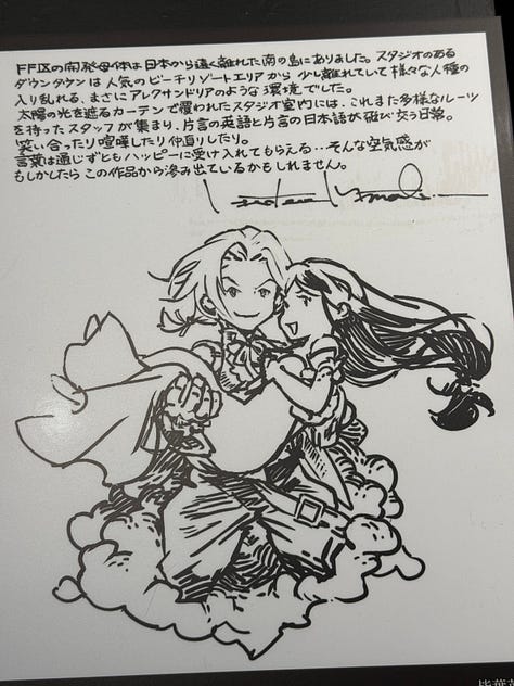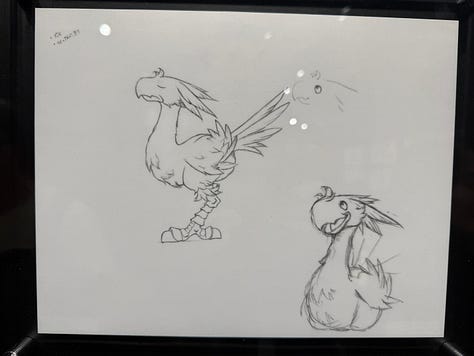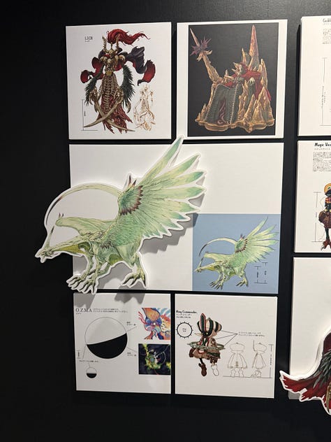 On peut aussi voir dans les photos ci-dessus, et d’autres partagées dans cette newsletter, des croquis de Toshiyuki Itahana. Enfin… Je suppose ! Car malheureusement seuls les dessins de Amano sont clairement crédités. Toshiyuki Itahana, génial character designer (aussi connu pour la série Final Fantasy Crystal Chronicles), a réinterprété pour le jeu les concepts de Amano.