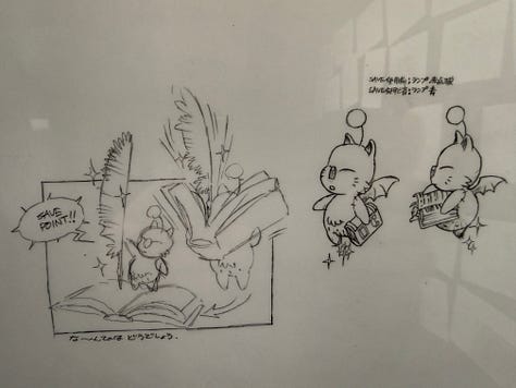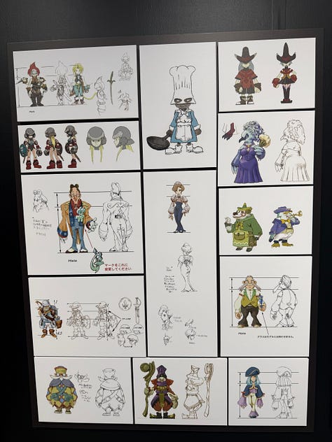 De nombreux documents de travail du directeur artistique de FFIX, Hideo Minaba, ont aussi été exposés.