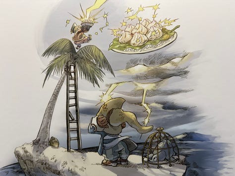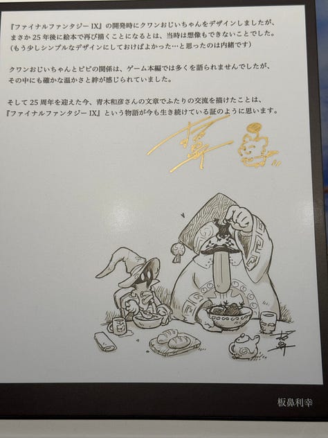 Je partage en fin de newsletter des images de son dernier livre d’illustration pour enfants où il met en scène Vivi et son “grand-père” Quan ! Son style est toujours aussi incroyable et constitue pour moi l’essence même de FFIX.
