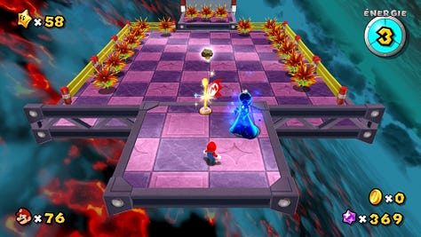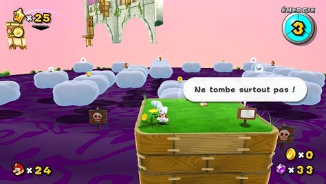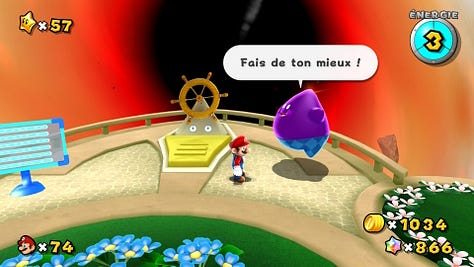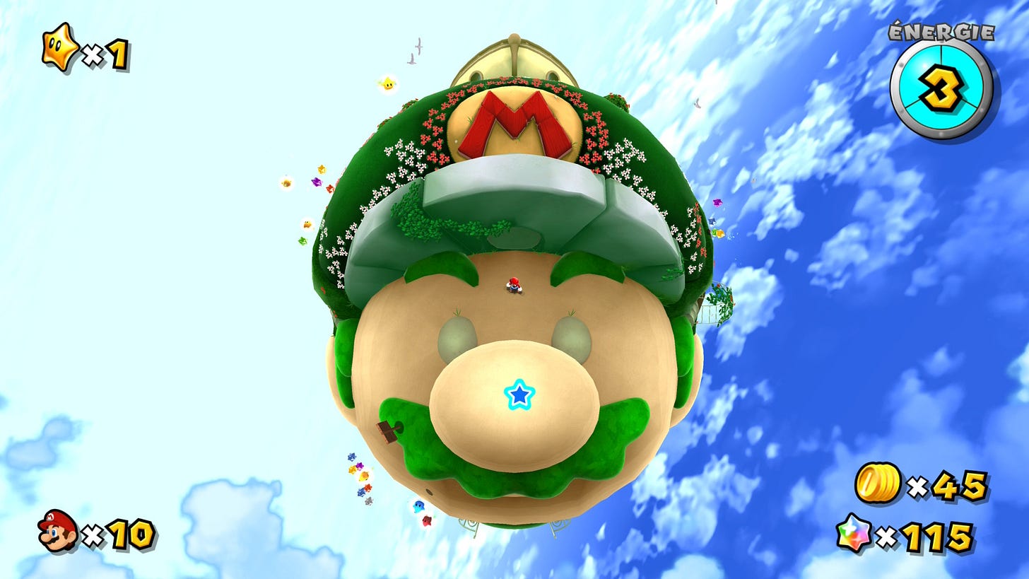 L’idée ici n’est pas de critiquer le jeu Asobi, loin de là ! J’adore Astro Bot et j’avais déjà souligné dans cette newsletter l’influence positive qu’avait eu sur lui Super Mario Galaxy. Nicolas Doucet, son directeur créatif, a d’ailleurs remercié à demi-mots Nintendo en recevant le prix du meilleur jeu de l’année lors des The Game Awards 2024.