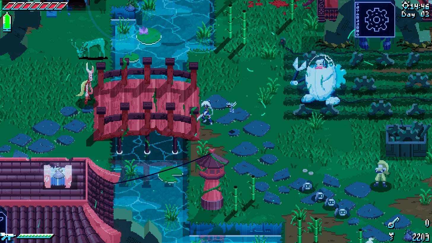 Sorti en 2021, UNSIGHTED est le premier jeu de Studio Pixel Junk, un studio brésilien indépendant fondé par Fernanda Dias et Tiani Pixel. Un titre au pixel art et à l'atmosphère inspirés par Hyper Light Drifter qui emprunte certaines de ses mécaniques au Souls-like. Absolument fascinant, il nous propose de diriger une jeune guerrière synthétique condamnée à s'éteindre comme les Réplicants de Blade Runner.