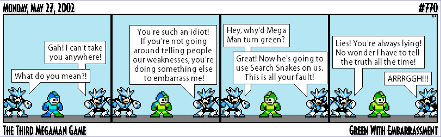 Un strip du web-comicBob & George, qui a parodié Mega Man de 2000 à 2007. Vous pouvez tous les retrouver sur son site officiel !