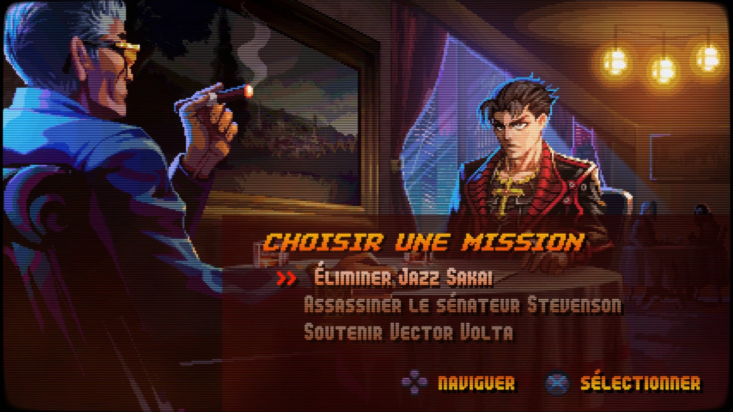 Encore un petit clin d’oeil à Mega Man ? Comme dans la série Capcom, il est en effet possible de choisir l’ordre des missions dans Neon Inferno !