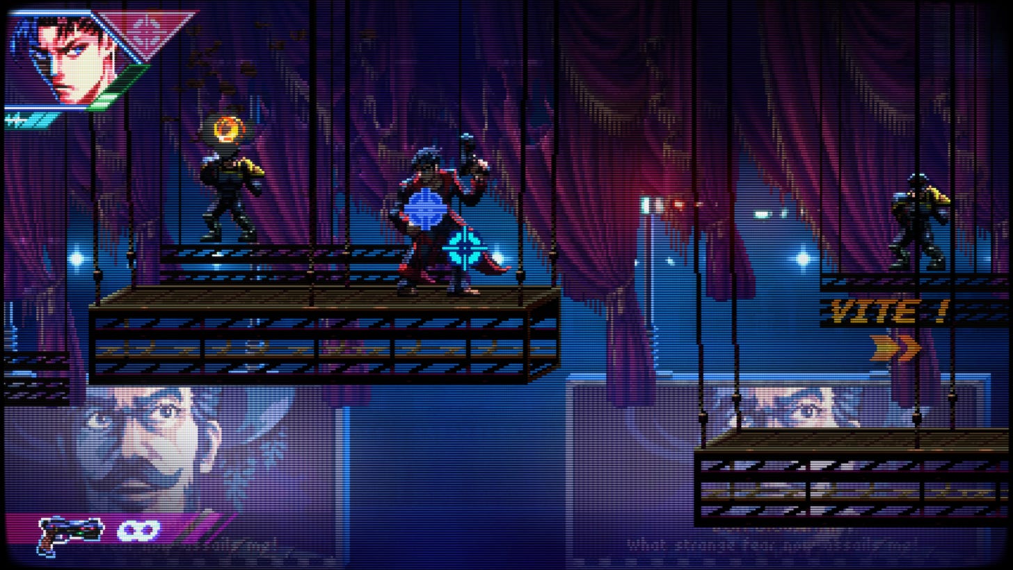 Ce qui distingue les run and gun, c’est le fait qu’ils sont les plus cools et les plus cinématographiques du genre action 2D. Ils sont peut-être moins intenses que les shoot’em up et les jeux de baston, mais ils compensent avec un meilleur world-building, un scope plus large et une mise en scène plus travaillée.