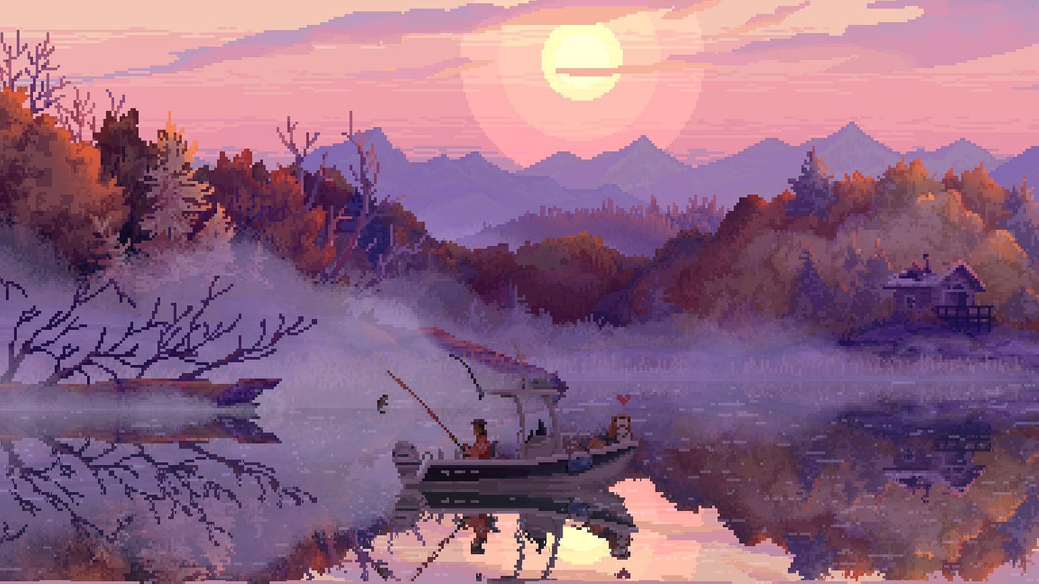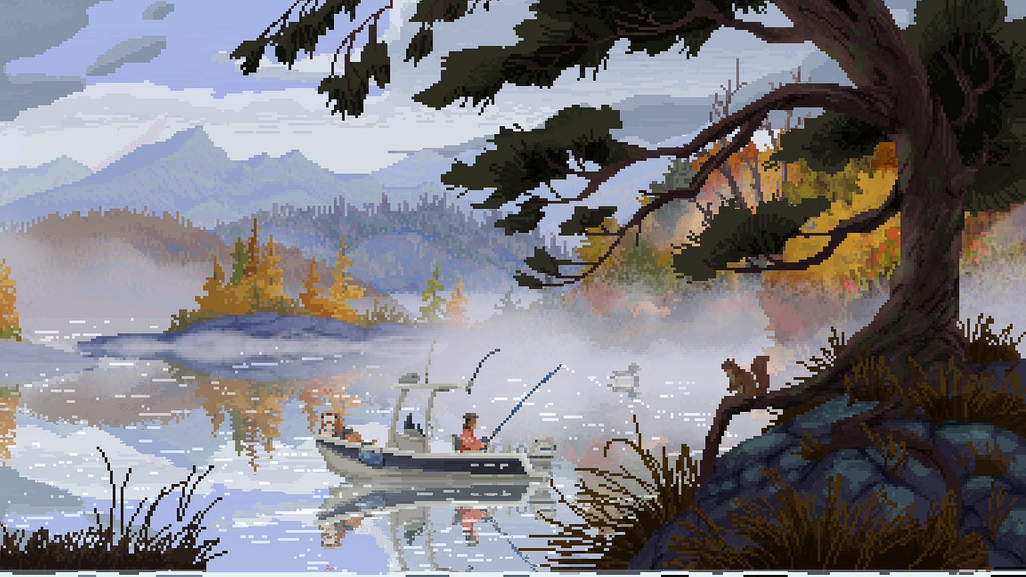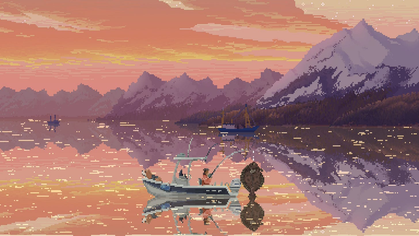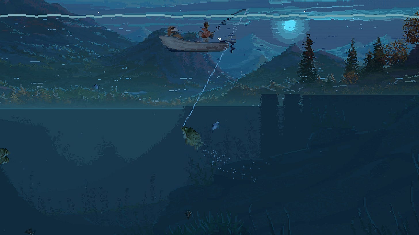 La pêche, dans le jeu vidéo, est souvent une respiration. Un moment où l’on s’octroie une pause, où l’on prend un chemin de traverse pour échapper un court instant au coeur de l’expérience proposée. Pour Hades, par exemple, c’est l’opportunité de figer le temps une poignée de secondes dans un jeu où la frénésie est reine.