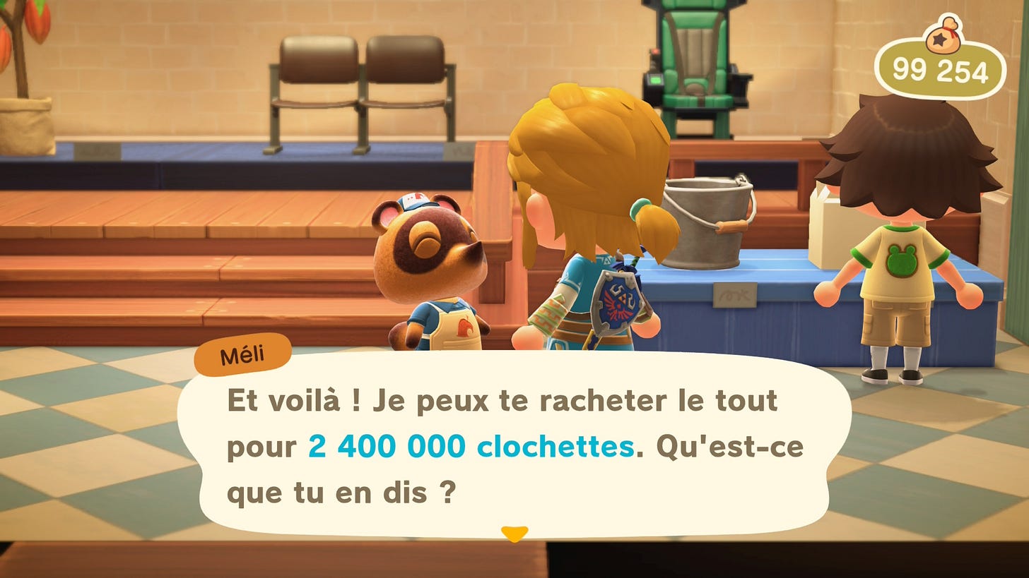 De très chouettes moments passés seul ou avec des gens, une coupure du temps ordinaire apaisante, je m'y suis découvert capable d'y comprendre quelque chose en notion de commerce – wow, Nookazon ! – et d'esthétique – ah, mes toilettes en or donnant cours à une fontaine au sommet d'une colline majestueuse... !