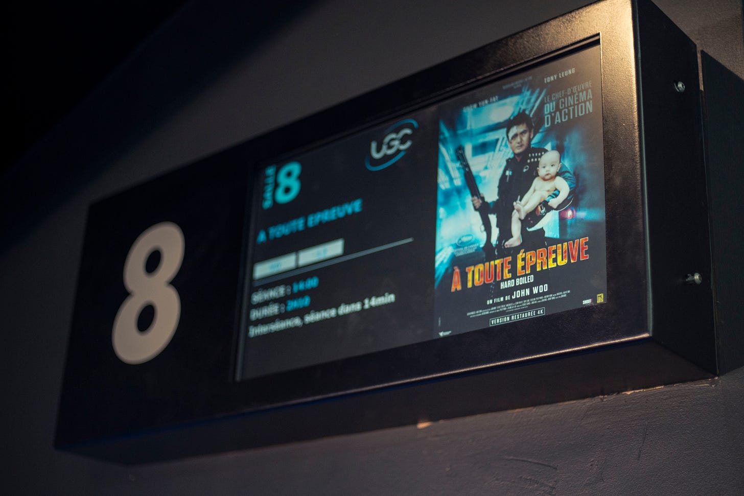 Hard Boiled, j’aurai tellement voulu plus l’apprécier mais ma séance a été gâchée à cause de spectateurs du range derrière moi qui se sont déchaussés et ont fait passer leurs pieds entre les sièges jusque dans mon rang à 2 ou 3 sièges de moi, ainsi qu’à cause d’une coupure de courant de 30min causant l’interruption de la séance.