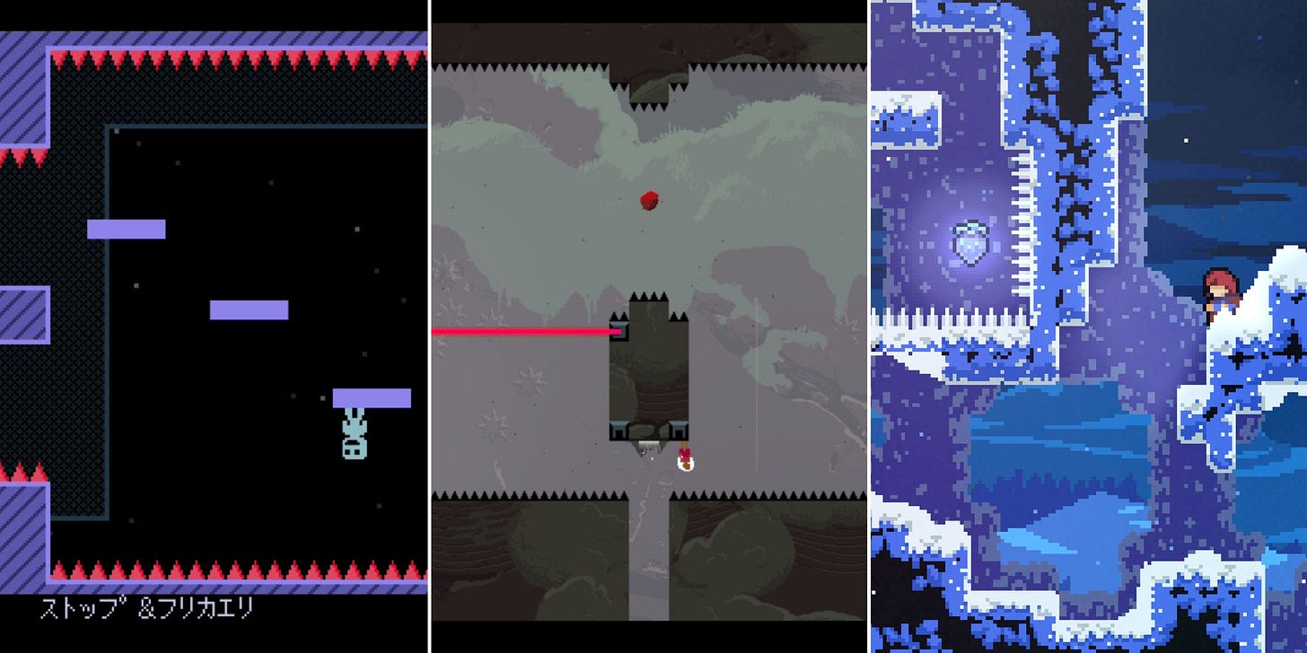 Mais il est difficile, que ce soit en découvrant le jeu dans un salon, en essayant sa démo sur Steam, ou tout simplement en regardant sa bande-annonce, de ne pas immédiatement penser au VVVVVV de Terry Cavanagh et au Celeste de Maddy Makes Games.